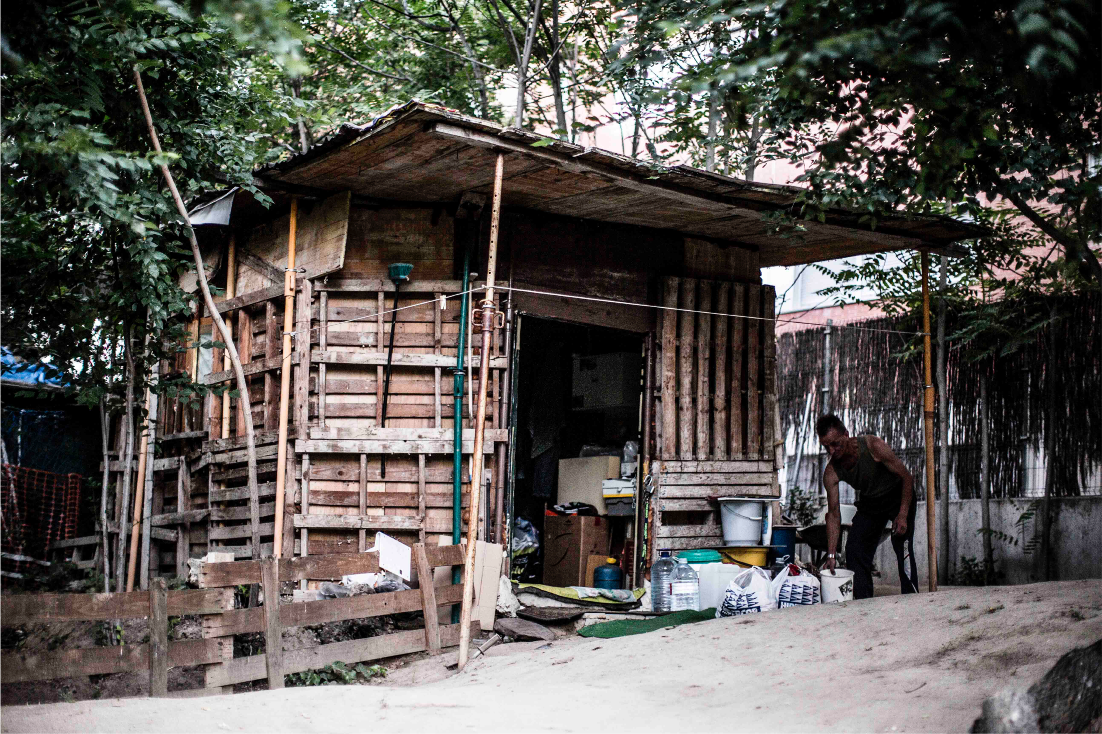 techo de uralita, sobre paredes de madera, sin agua corriente, con frío y humedad, inseguro...